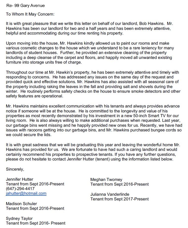 • Reliable and Approachable Local Owner (less than 10 minutes away) who has rented homes to students for 20 years, you can be confident your needs will be handled properly and quickly.
