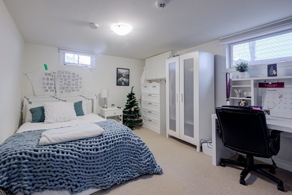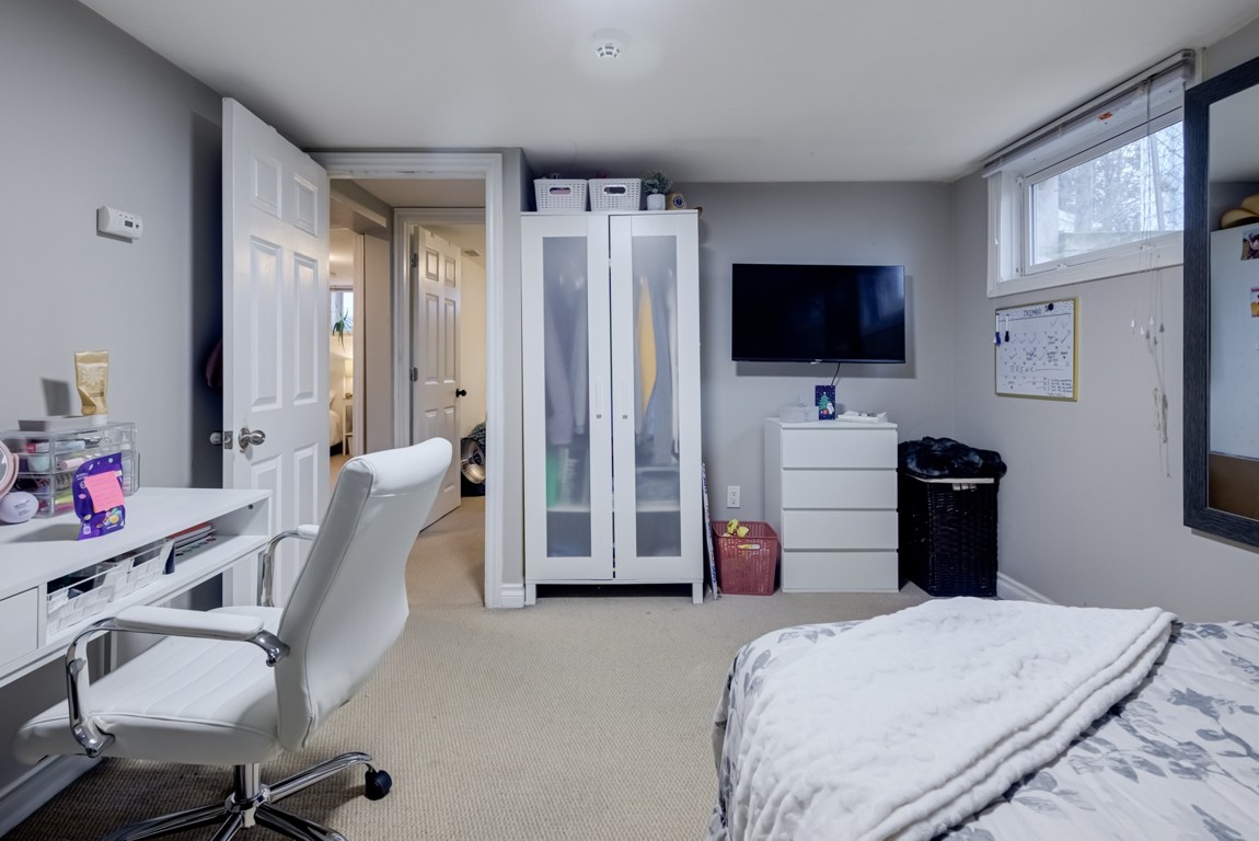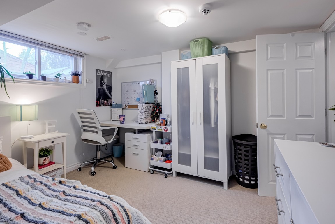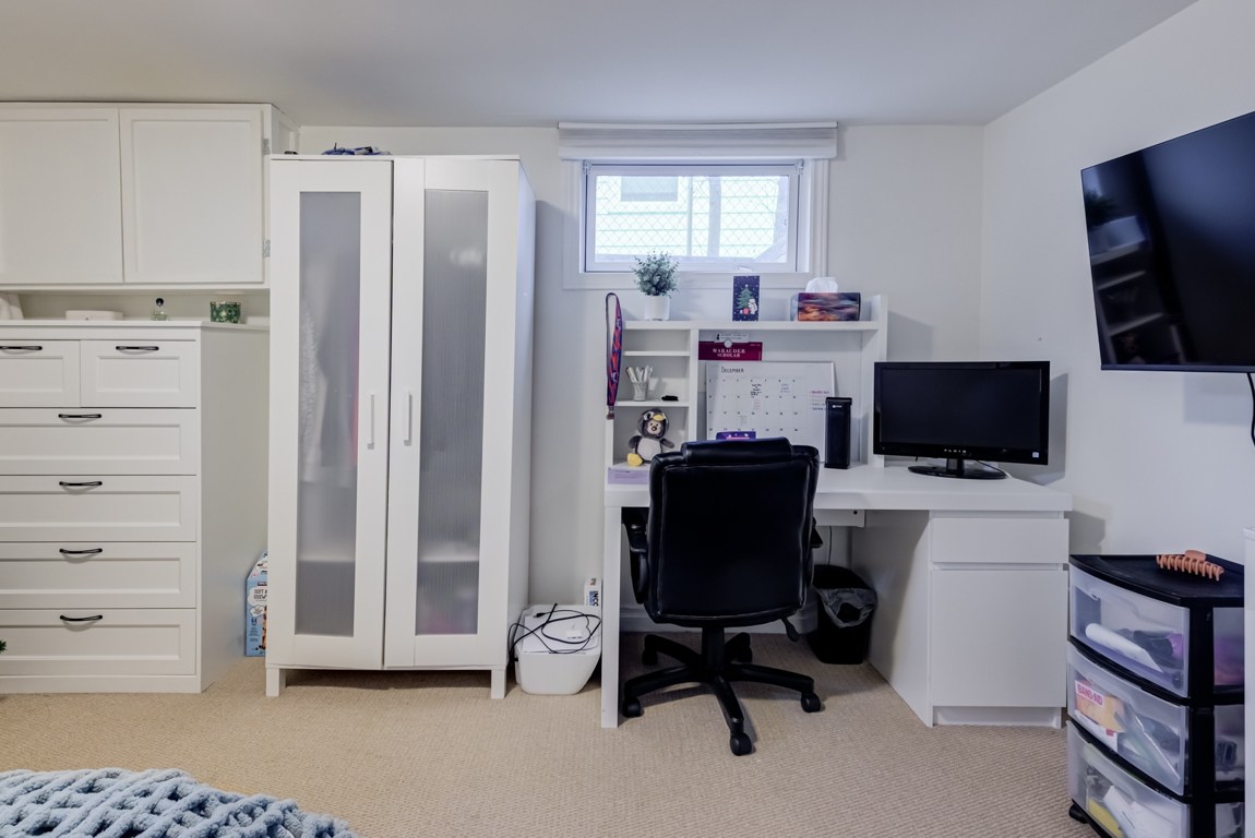 Second Basement Bedoom Showing Window Desk Shelves And Closet