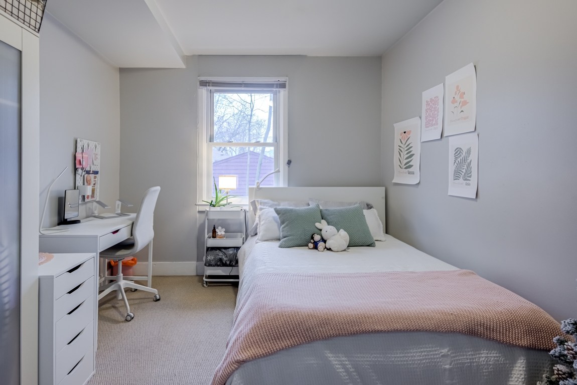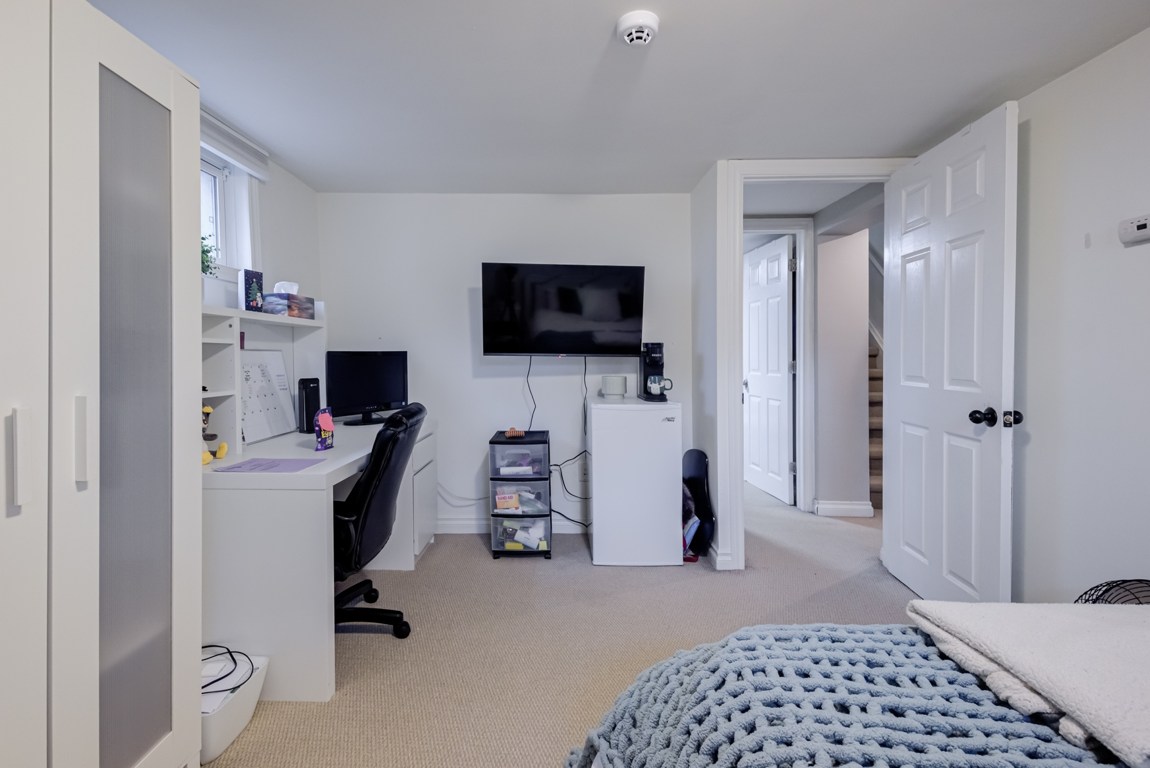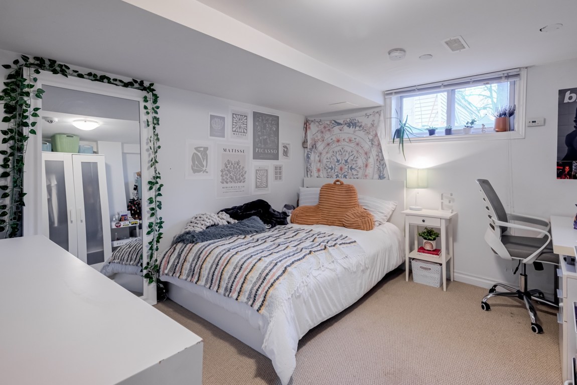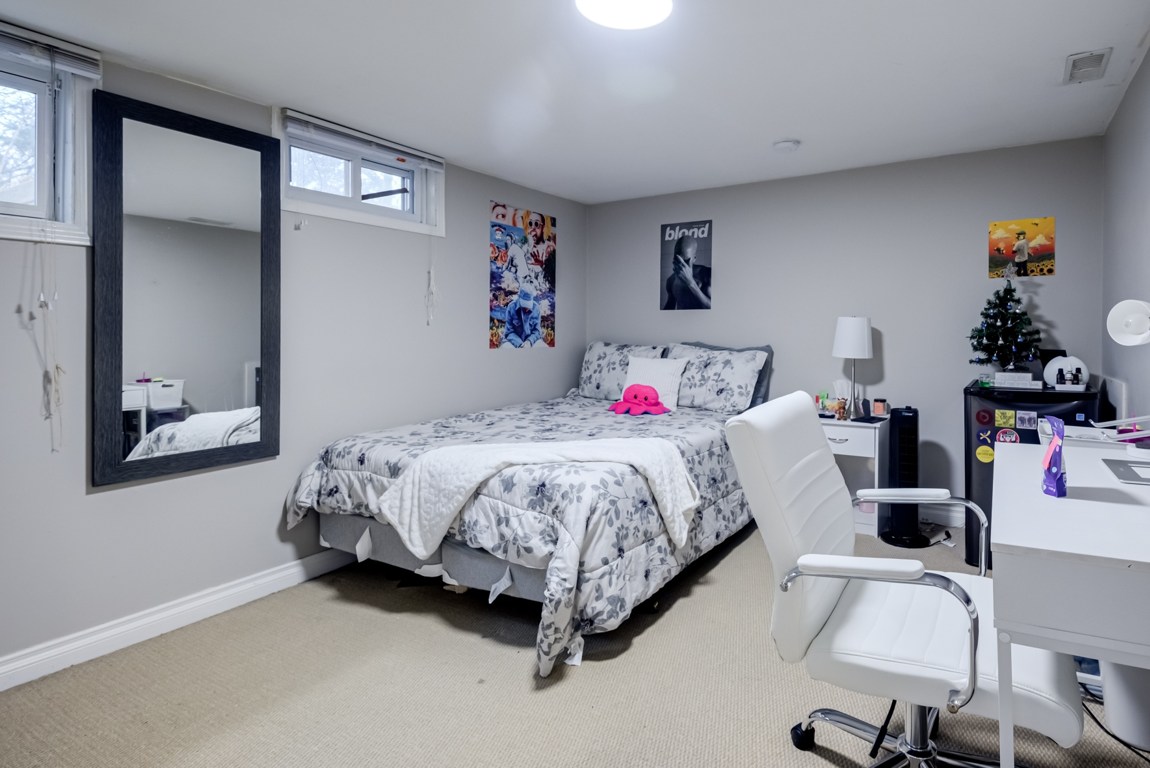 Second Basement Bedoom Showing Window Desk Shelves And Closet